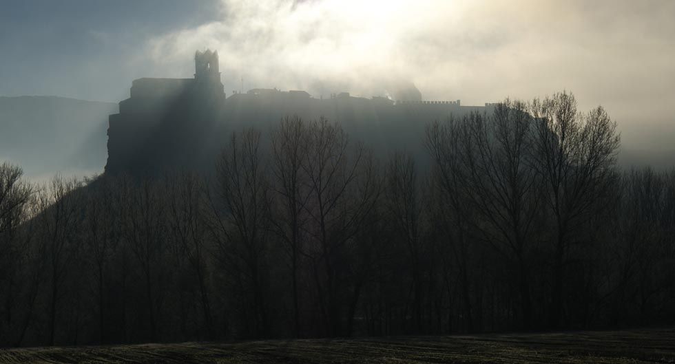 La silueta de su castillo, levantado sobre un peñasco, tiene como fondo el imponente pico Humión, incluido en el Espacio Natural de Montes Obarenes.