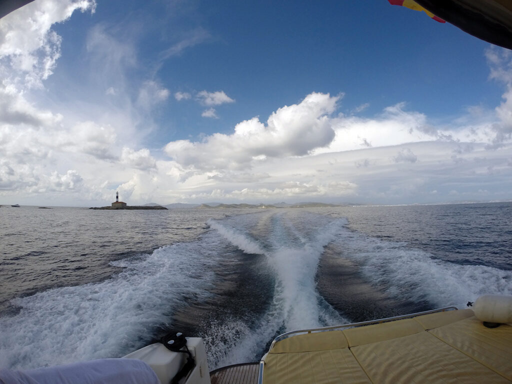 La travesía de Ibiza a Formentera no dura más de 30-40 minutos y en todo momento no dejamos de vislumbrar las fabulosas costas y peñones de ambas islas que van apareciendo según nos vamos alejando de Ibiza. Al ir acercándonos a estos islotes se empiezan a vislumbrar los místicos faros de leyenda. Un placer para la retina. Con un cielo azul intenso y disfrutando de este paseo contemplativo nos acercamos al puerto de La Savina.
