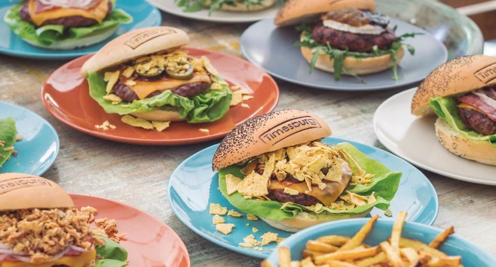 Timesburg nace de la inspiración de tres socios (Sergio Ibáñez, Miguel Ángel Rodríguez y Maiol Rodríguez) que quisieron dar a la hamburguesa una orientación más de autor, huyendo de los prejuicios que las multinacionales habían creado sobre este. Y es ahí donde, después de pruebas y pruebas en casa, desarrollan una carta en homenaje a distintos puntos del planeta, en la que cada hamburguesa recoge un poquito del sabor de ese país. Y surgen nombres como La Massimo, con tomate seco de origen italiano o La D.F. con el toque picante que aporta el jalapeño y el chipotle, entre muchas otras.