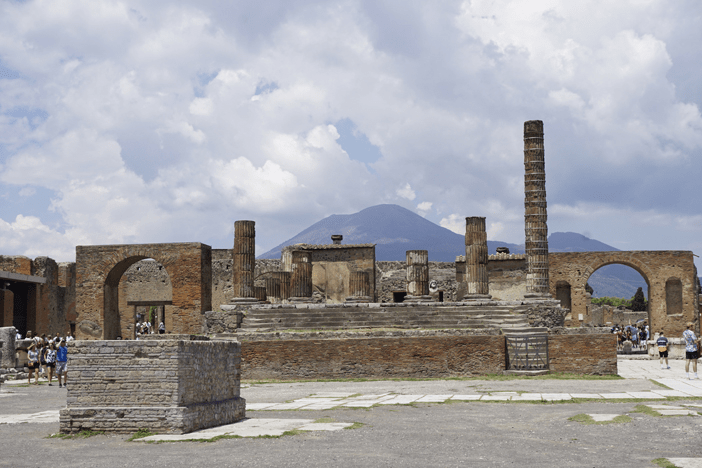 En el año 79dC tuvo lugar la primera erupción documentada del volcán Vesubio, una montaña adorada en la época y  que destruyó las ciudades de Pompeya, Herculano, Stabias y otros pequeños pueblos del entorno. Los restos encontrados de las antiguas ciudades de Pompeya y Herculano sepultadas por las erupciones ofrecen un cuadro inigualable de la sociedad y de la vida en la antigüedad clásica.