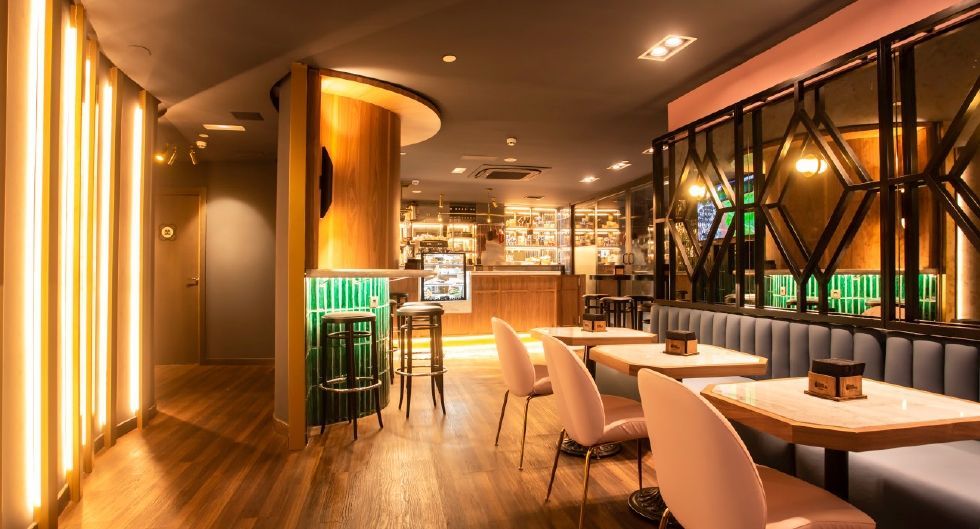 El Bar del Indigo se transforma por completo y, para la ocasión, se ha vuelto más colorido y nocturno, adoptando un estilo castizo que lo convierte en una auténtica taberna madrileña. Se trata del espacio más versátil del hotel donde disfrutar de una buena cerveza acompañada de una tapa, sin abandonar su marca tradicional, pero con un ambiente renovado y moderno de estética cuidada donde los colores verdes, azules y ocres metalizados de las paredes establecen una armonía común que se traslada también a otros espacios renovados del hotel como el lounge. El patio interior cuenta con un mural diseñado por Asier Vera y Víctor Müs, artistas y muralistas fundadores del colectivo Chisme.