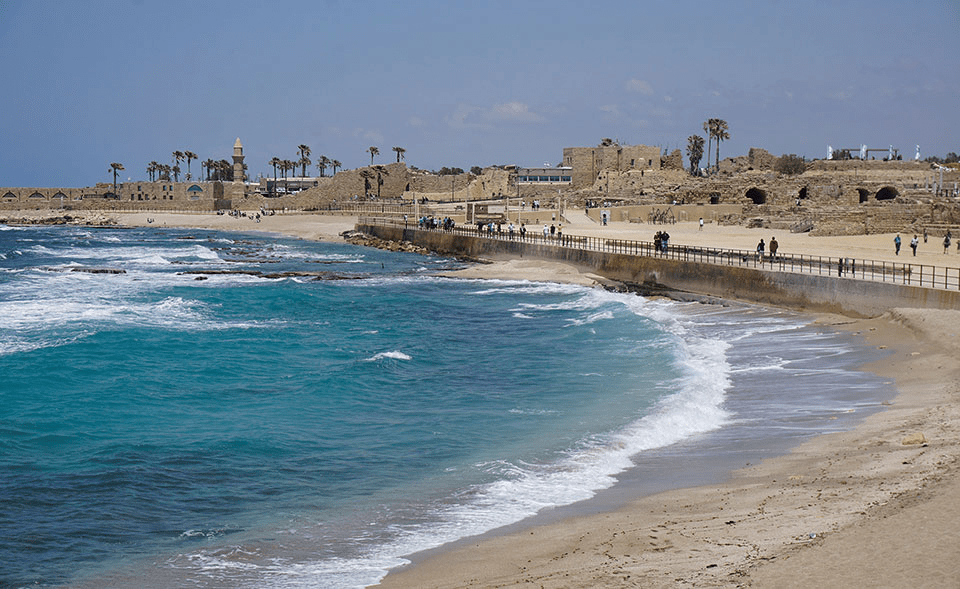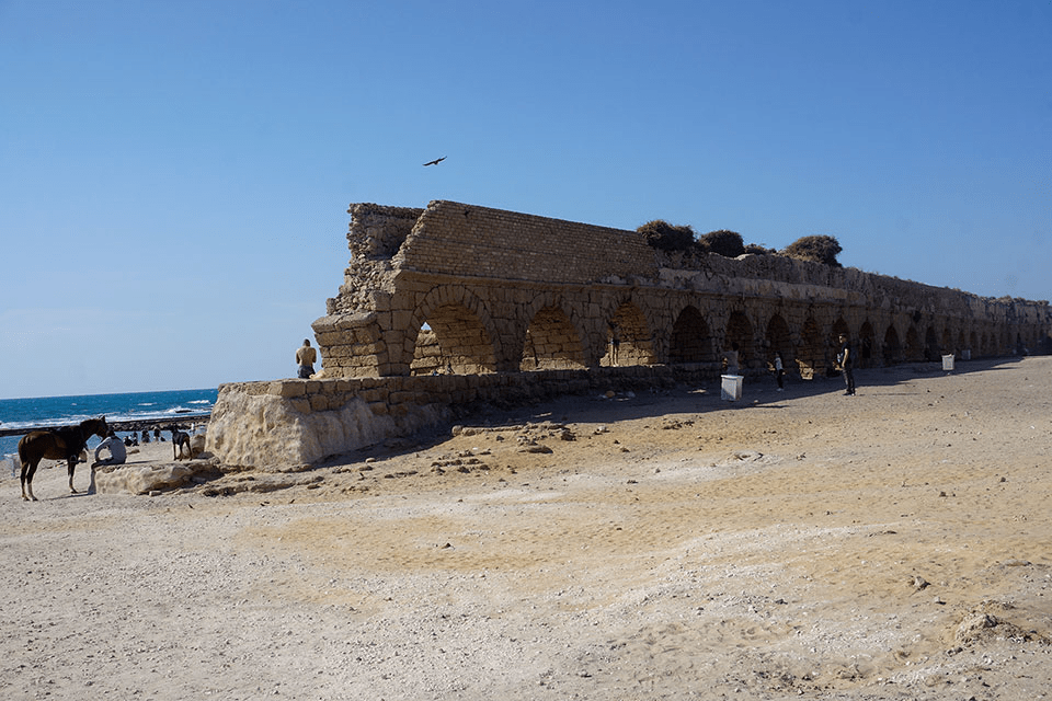 La Playa del Acueducto, es una de las mejores playas de Israel, donde un antiguo acueducto se alinea sobre un arenal de dunas. Bajo sus arcos, familias y amigos disfrutan del picnic a la sombra. El paseo a orillas del mar es una maravilla. Sin automóvil la visita a este lugar es complicada. Alquilar uno y hacer un recorrido por la zona es lo más aconsejable. Se halla aproximadamente una hora en coche desde el centro de Tel Aviv.