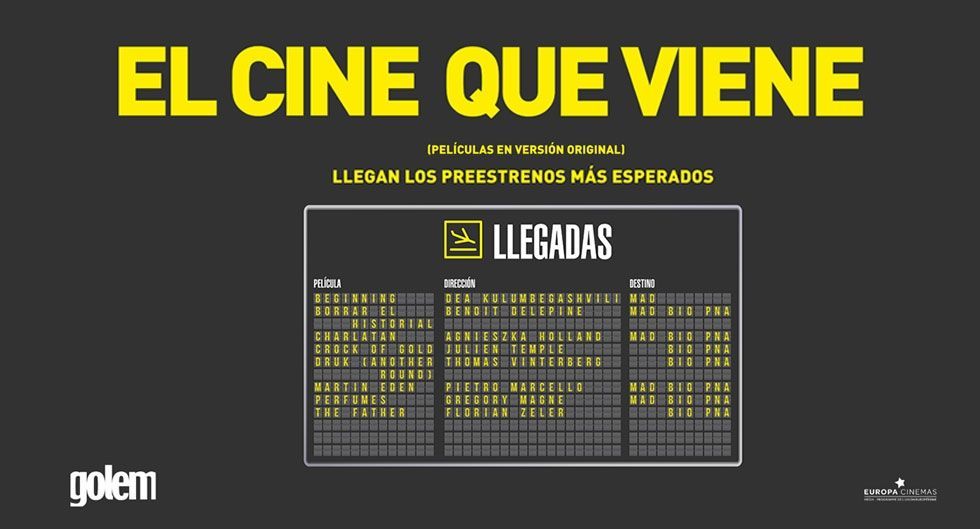 Ocho de las mejores películas de los próximos estrenos se proyectan en exclusiva en los cines Golem de Madrid, Bilbao y Pamplona.