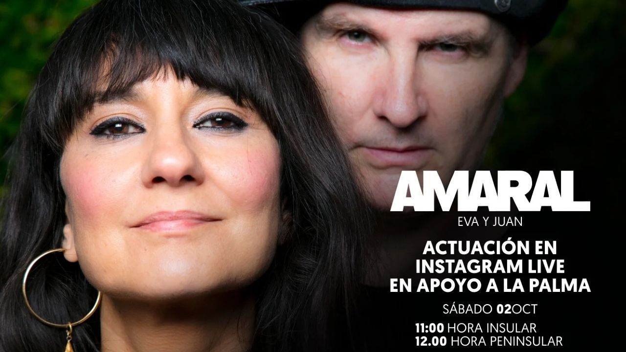 El grupo Amaral tenía previsto un concierto en La Palma este sábado 2 de octubre, dentro de su Gira «Salto al Color», pero dada la situación tan dificil que están pasando los palmeros actualmente, Eva y Juan han querido estar de alguna manera con ellos, aunque tenga que ser desde la distancia física, mostrando su cariño y apoyo en estos difíciles momentos y acompañando, a través de sus canciones, a quienes están sufriendo las consecuencias de la erupción de Volcán.