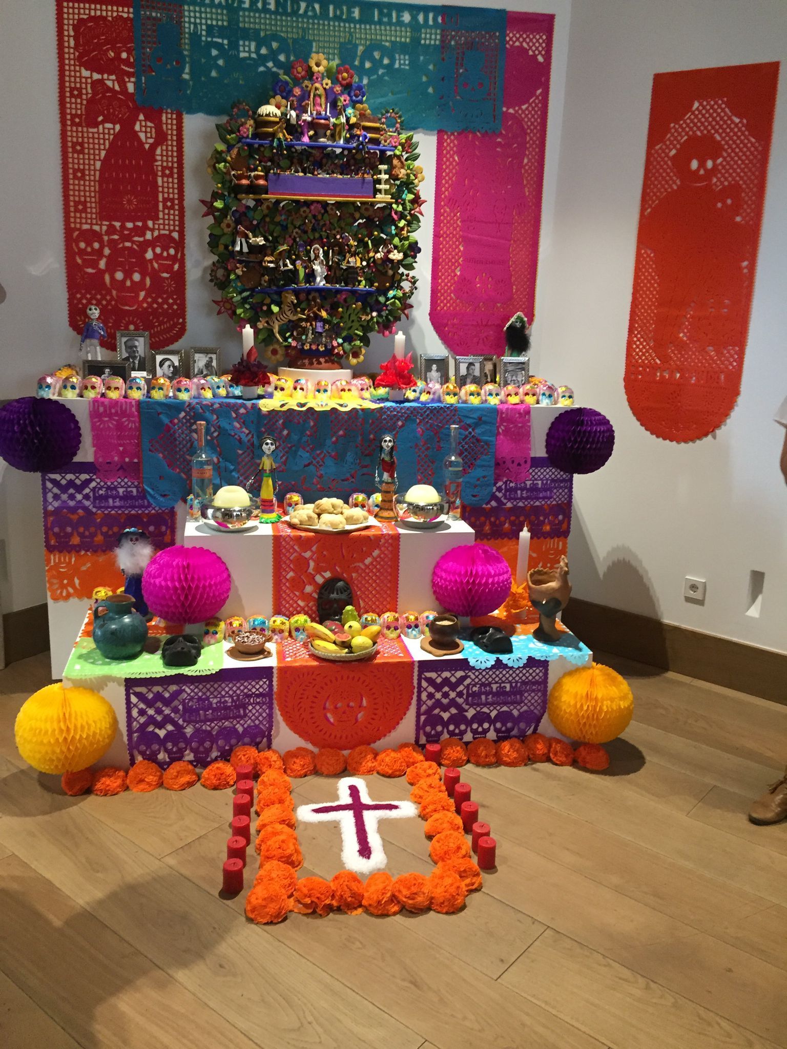 Como todos los años, en la Casa de México de Madrid se celebra el día de muertos, una tradición mexicana dónde se recuerda a los seres queridos que ya no están con una ofrenda llena de colorido con papeles picados, velas (iluminan a las Almas que vienen del más alla), flores de papel, calaveras, artesania multicolor, comida que le gustaba al difunto…