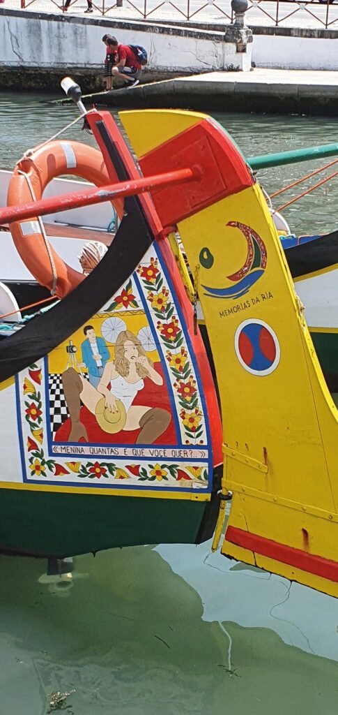Por los canales, navegan los característicos barcos “moliceiros”, barcazas típicas que recuerdan a las góndolas venecianas. Antaño se desplazaban con una pértiga o a vela, en la actualidad, van a motor y en breve se convertirán en eléctricos. Se utilizaban para transportar el «moliço», un alga que servía como abono y también para el transporte de la sal. Hoy en día realizan paseos turísticos que nos enseñan la ciudad desde al agua. Están pintados de vivos colores, con representaciones en la proa y en la popa de escenas de la vida cotidianas, en su mayoría con un carácter erótico, en alusión al carnaval veneciano. Hay otro tipo de barco que surcan los canales, el “mercantel”, más clásico y no tiene la proa curvada. Se utilizaba para transportar mercancía.