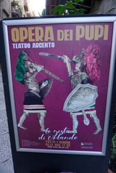 Regresamos a Via Vittorio Emanuele, en la que una estrecha calle, Via Pietro Novelli ubica el Teatro Argento. En él se representa la Este teatro de marionetas apareció en Sicilia a principios del siglo XIX y tuvo un gran éxito entre las clases populares, convirtiéndose en una de las expresiones más significativas de la memoria histórica y de la identidad cultural siciliana. Narran historias basadas en literatura caballeresca medieval, en poemas italianos del Renacimiento, en la vida santos o célebres malhechores. Las marionetas son auténticas obras de artesanía.