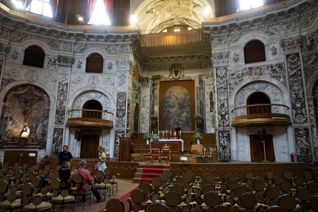 Tras los devastadores bombardeos en la II Guerra Mundial, que destruyeron toda la decoración interior se iniciaron las restauraciones a cargo del arquitecto Franco Minissi quien, resaltó la decoración original a la reconstruida, esta última está en color blanco. También adaptó la iglesia a un auditorio moviendo el eje del longitudinal al transversal, así también redujo la distancia entre el público y la orquesta. Una iglesia extraordinaria que tienes que visitar.