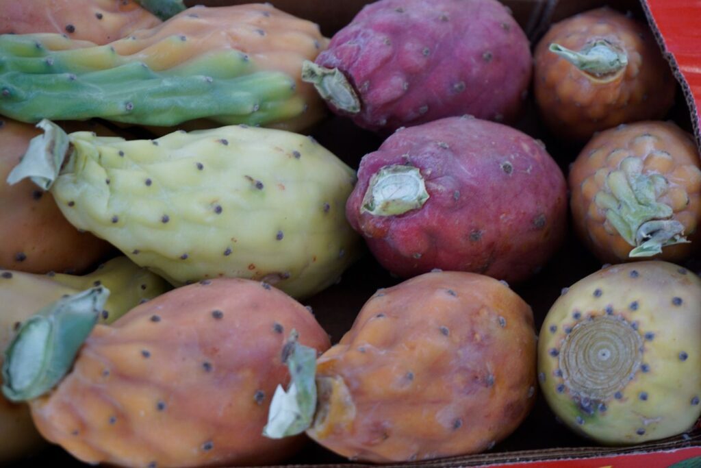 Elegimos el Mercado Ballaró, por ser el más antiguo, el más grande y el más concurrido, situado a escasos minutos de la Piazza Bellini. Serpenteando por las callejuelas y según nos acercamos, aparecen los comercios de comida rápida con expositores a la calle. El ambiente se vuelve más ajetreado y bullicioso. La mezcla de olores, griterío y vida local es sorprendente. Cajones de fruta y verdura vacías se apilan por las esquinas. Las que tienen mercancía, están expuestas sobre tablones a lo largo de una calle que parece no tener fin, dejando una estela de color. Algunos puestos ofrecen productos para la cata. Probamos cuatro variedades de higos chumbos (de distintos tonos y sabor) que allí mismo nos preparan sobre una bandejita (previo pago de 2€). Vitrinas de bares y restaurantes se sacan al exterior alternando con los puestos de mercancías, ofreciendo la tradicional comida callejera. También las barbacoas y parrillas desplegadas en la calle muestran lo que se cocina sobre las brasas, tanto de carne como pescado, dejando un combinado de olores indescriptibles. En las mesas contiguas, familias y amigos almuerzan en un ambiente festivo.
