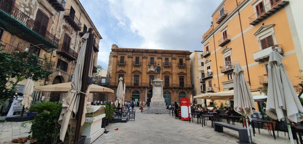 Terminamos en Piazza Marina, un antiguo pantano hasta el siglo XIII que más tarde sirvió como lugar de ejecuciones. Actualmente es un bonito parque urbano. En los alrededores varios palacios ubican algunos museos. La oferta cultural de la capital de Sicilia viene enriquecida con el Teatro Politeama y el Teatro Massimo del siglo XIX. Pertenecen a la época dorada del art Nouveau en Palermo que se identifica con el arquitecto Ernesto Basile.