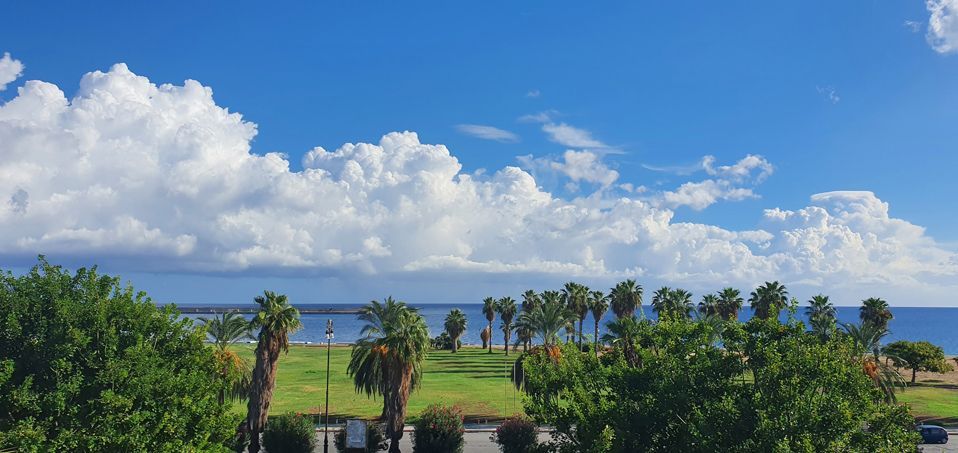 Lo primero que hicimos fue recorrer paseo marítimo en bicicleta, conocido como Foro Itálico. Un parque en el que los locales disfrutan de zonas verdes a la sombra de las palmeras, se relajan en los bancos de cerámica o simplemente pasean frente al mar. La luz rosa del atardecer nos dejó imágenes preciosas de la bahía.