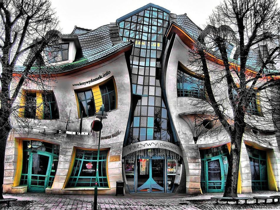 En primer lugar, viajando hasta Polonia, concretamente a Sopot, nos encontramos con la conocida como “Casa torcida”, que actualmente es un centro comercial.