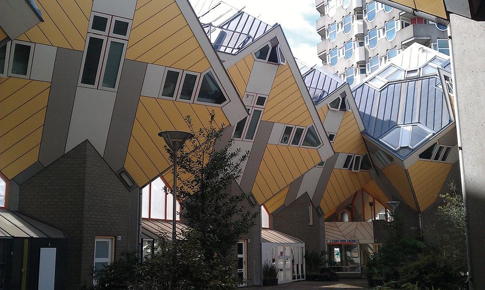 Este arquitecto, buscando innovar y diferenciar a la ciudad, diseñó un conjunto de casas que parecían un árbol, rotándolas 45 grados, y aunque al principio el proyecto planteaba la construcción de 74 casas, 38 acabaron siendo realidad. El conjunto de casas se llama el Bosque de Blaak.
