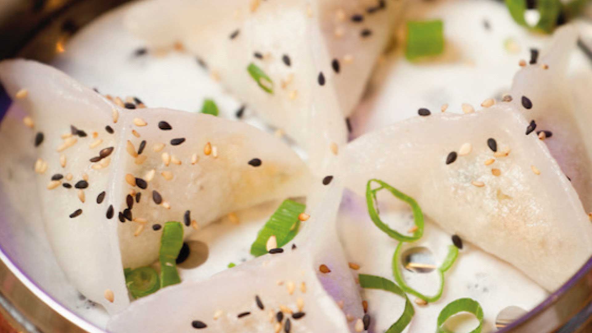 Los suculentos dimsum triangulares, que están hechos con fécula de patatas y carne, son altamente recomendables por su impactante sabor y por la facilidad a la hora de comerlos, lo mismo que las empanadillas de camarones al vapor y los dimsum rellenos de verdura. También es recomendable el pato asado, que viene acompañado de una salsa muy sabrosa, unas tortitas y de verdura pepino y cebolleta para montarlo todo y disfrutar de un excelente plato.
