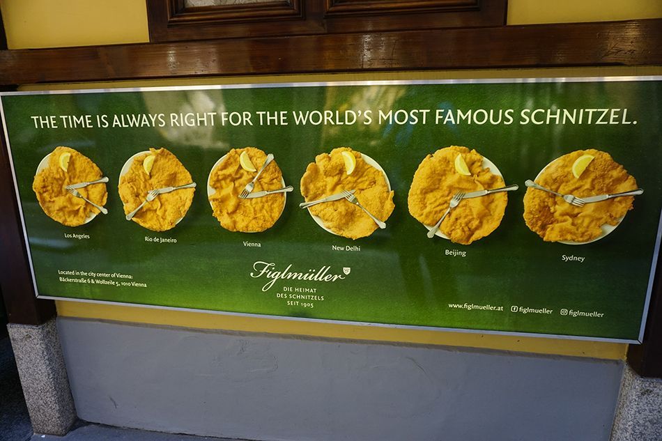 Aunque el símbolo culinario de Viena, es el escalope vienés o Wiener Schnitzel, para el que sugerimos el restaurante de comida típica vienesa Figlmüller famoso por sus enormes schnitzel que se salen literalmente del plato, existen otros platos tradicionales de la gastronomía austríaca, como El Tafelspizt (carne de buey cocida con verduras vino y especias), el sabroso Gulash ( estofado de carne con pimentón y cebolla) , el Knödel (varios tipos de albóndigas de dulce y saladas), la Rindsuppe (sopa de carne), la Forelle nach Müllerin Art (trucha), Selchfleish, (carne ahumada), Powidl (guiso de ciruelas), Beuschel (ragout con vísceras de vaca), Selchfleisch (carne ahumada) con sauerkraut (col agria).