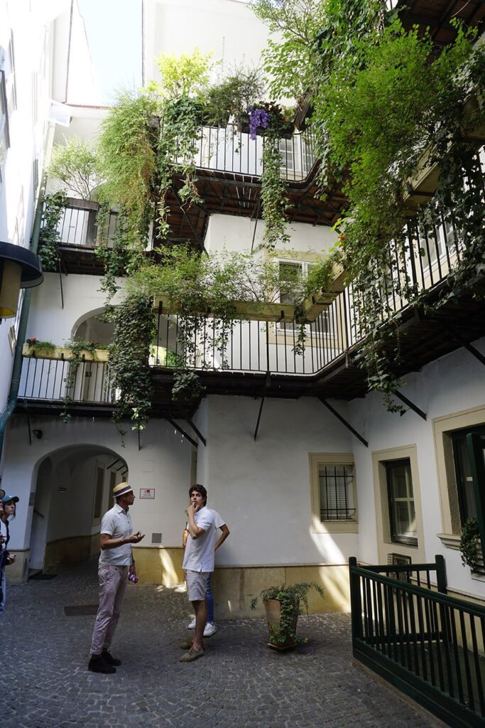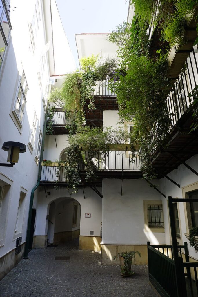 Viena alberga numerosos pasadizos que conectan calles y edificios. Adentrarse bajo un arco situado en alguna de sus calles, supone no solo acortar las distancias sino descubrir restaurantes, terrazas, exposiciones artesanales, elegantes boutiques, pequeñas plazas y bonitos patios de algunas viviendas de particulares, remanso de paz y tranquilidad entre el bullicio de las calles adyacentes. A unos metros del Café Central, se sitúa el Ferstl (lo verás señalado en la entrada).