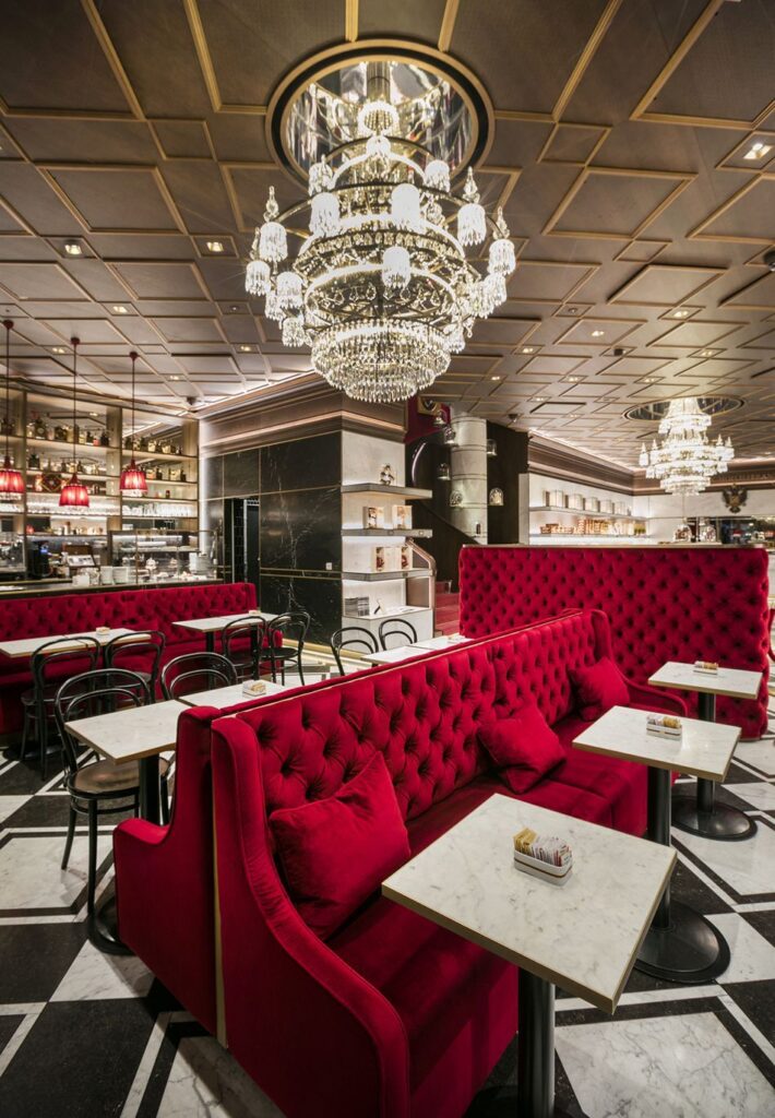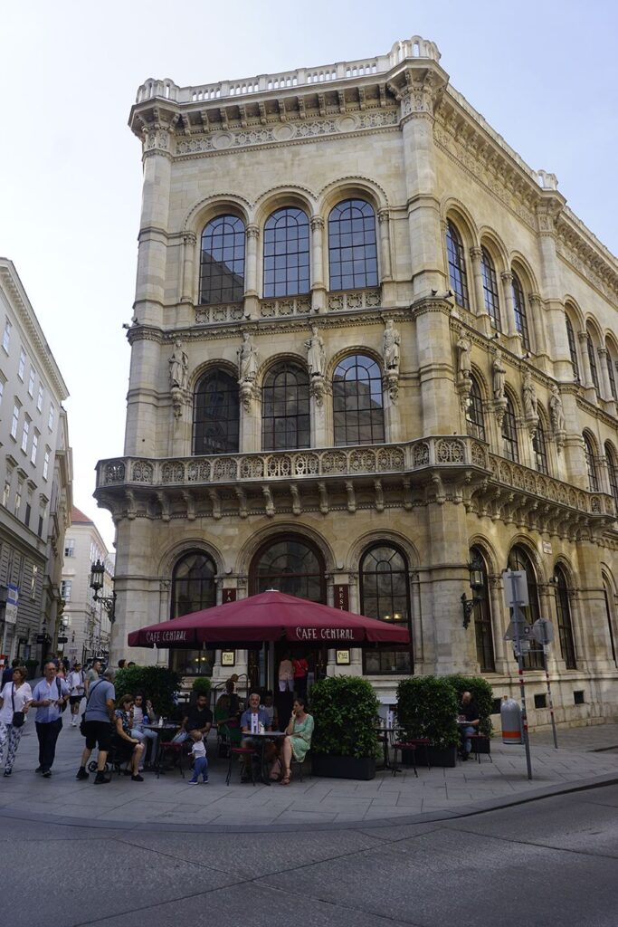 En Viena las cafeterías son una institución. Se trata de lugares de encuentro donde además de disfrutar del café y las tartas, se utilizan como sala de lectura, en algunas se juega al billar, a las cartas, al ajedrez …… Nos encontramos con cafeterías muy clásicas, suelo de madera, mesas de mármol, divanes acolchados, lámparas de araña y música de piano o jazz a la vez que degustamos un delicioso trozo de tarta imperial o un appel strudel acompañado con un delicado café vienés. Un ejemplo es el veterano café concierto Weimar o el café del Hotel Imperial. Hay muchísimos y cada uno guarda su historia donde se han dado cita célebres personajes de finales del S.XIX. Café Central (1876), Café Korb, Café Kafka, Café Sacher, Café Hawelka, o el Café Fenster cuyo take away resulta muy original ya que increíblemente lo meten en un cucurucho de helado.