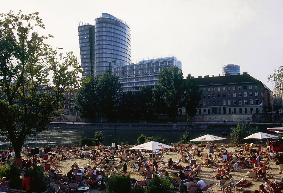 Con el buen tiempo, Viena es una delicia, en especial las orillas del canal del Danubio, en el que se han instalado chiringuitos, locales y restaurantes, que en verano lo convierten en uno de los lugares más animados. Sobre el agua, destaca el Badeschiff, un barco con piscina y que permite el baño en los días de calor, y también la estación fluvial futurista del Twin City Liner, la línea de catamaranes que comunica Viena con Bratislava, que acoge el restaurante Motto am Fluss, combinando el diseño con una excelente gastronomía.