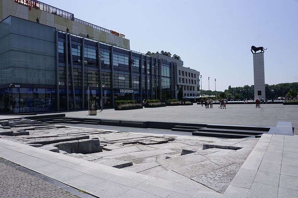 Adyacente a la catedral, podemos ver un pequeño espacio con los vestigios de una sinagoga construida en 1893 que fue demolida por el régimen comunista en 1967.
