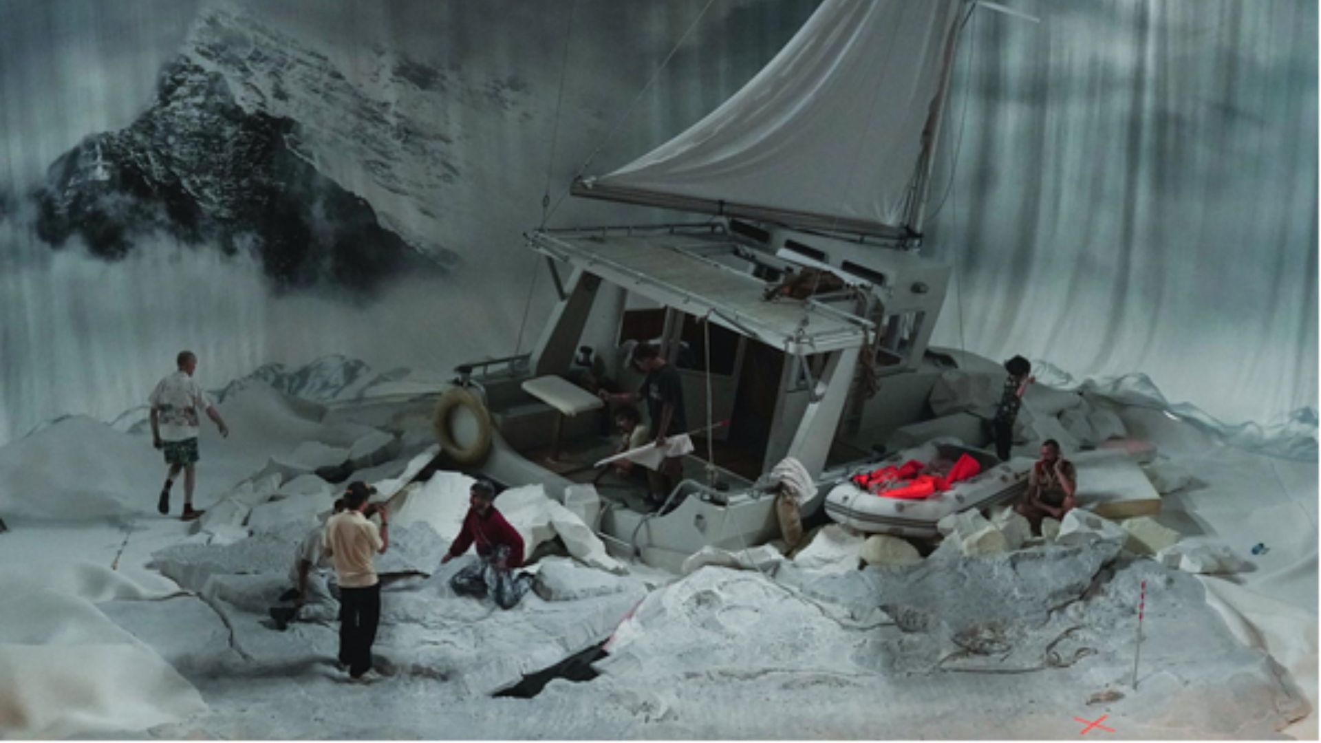 Esta creación de danza-teatro comienza con un viaje de proporciones apocalípticas. Un barco ha encallado, atrapado en una montaña de hielo ártico. Para los pasajeros obligados a sobrevivir en este universo hostil, sólo hay una esperanza: que la nieve se derrita y libere el barco. Pero pronto, la ficción se resquebraja, la situación extrema se suspende y se despliega una nueva realidad: la de los artistas y el director que están creando la obra. ¿Qué se representa, qué es real y cómo manipulan al público los creadores del espectáculo?