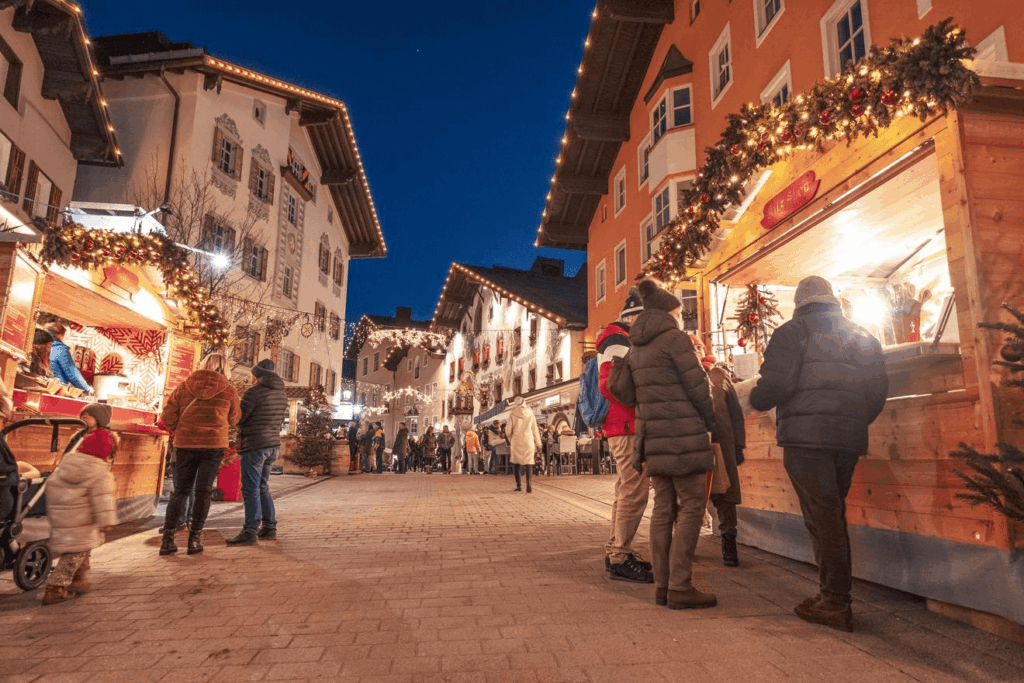 Durante la época navideña, Kitzbühel se transforma en un cuento de hadas. Un pintoresco escenario de coloridos edificios y encantadores rincones. Desde el de 22 de noviembre hasta el 26 de diciembre, se instala el Mercado de Adviento, con cuentacuentos y exposición de belenes, mientras el olor a castañas asadas y ponche caliente inunda las calles. Las actuaciones de coros y grupos locales recrean el adorable ambiente navideño y los niños decoran flores de Pascua, se divierten en el adorable carrusel, disfrutan del desfile de San Nicolás o en la mágica oficina de correos de Christkindl. La Procesión de San Nicolás será el 06 de diciembre y el Coro de niños Wiltener Sängerknaben el día 8 de diciembre.
