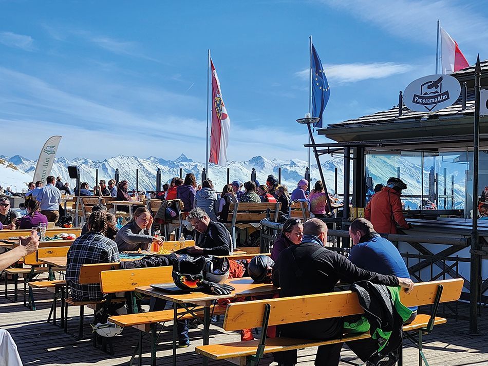 A 1750 metros, Berghaus Tyrol y a 1972 metros Shutzhutte Steinbergkogel, reciben a los visitantes con una gran variedad de delicias locales y vistas increíbles. Esta área nos presenta hermosos y largos descensos.