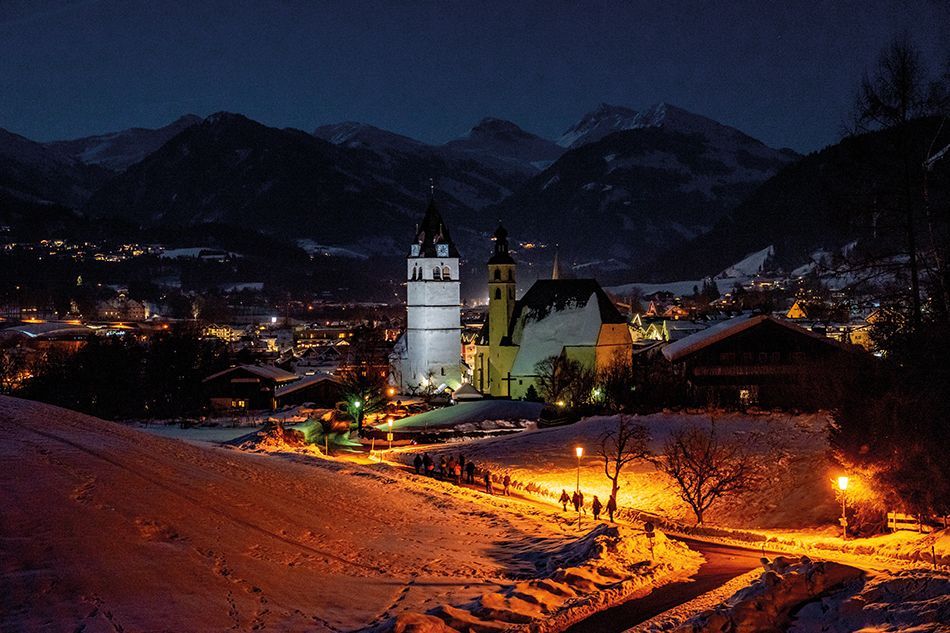 Pero Kitzbühel, no solo atrae a los amantes de la fiesta, el esquí nocturno y las pistas iluminadas brindan la posibilidad de vivir una experiencia inolvidable en la que también es posible realizar senderismo con antorchas.