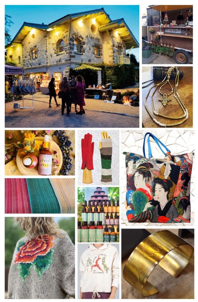 El visitante encontrará bolsos exclusivos en telas preciosas, como los que crea Bruna y Olvido, la maravillosa ropa pintada por Raquel Castaño, la joyería natural de Piluca Ortego, los originales collares de Pilar Bilbao, guantes para toda la familia de Joyas Plebeyas, los chales y bufandas tejidos por Lamapuche, jabones naturales de Natural Alison o la cosmética natural de OhmyKoko, ropa y complementos con telas maravillosas de Karum y también sudaderas y camisetas para practicar yoga de Noara.