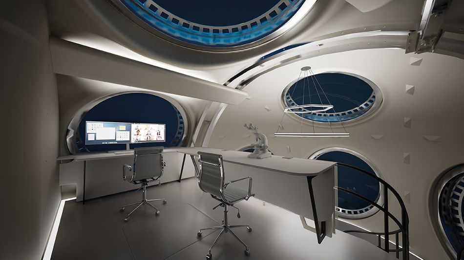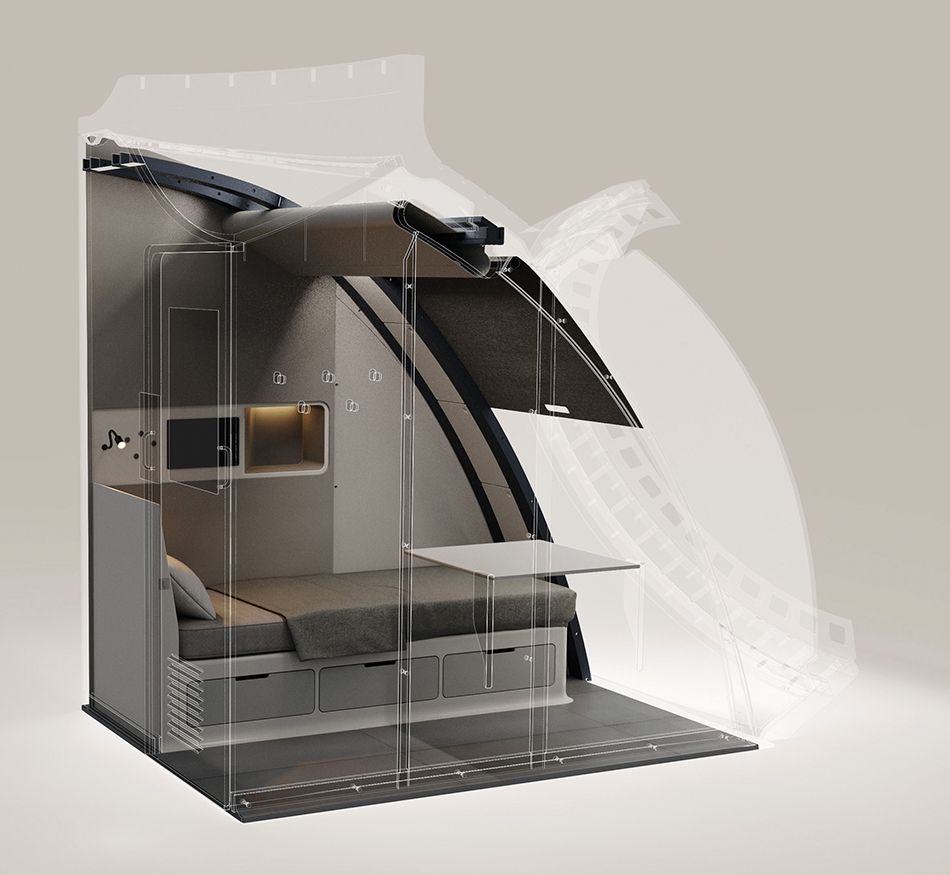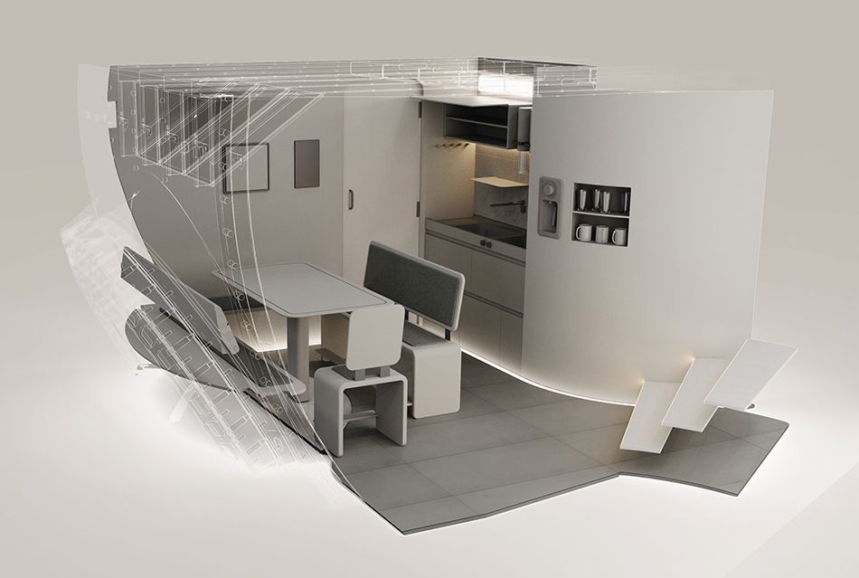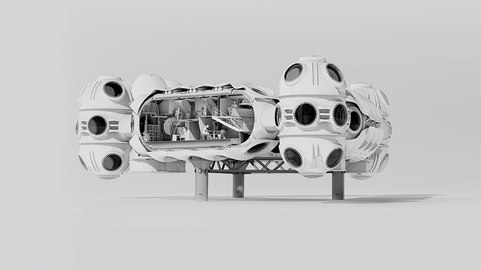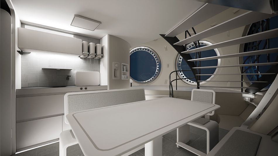 Estos hábitats tendrán un dormitorio cómodo compartido, una zona para cambiarse con casilleros o armarios y una cama para descansar en privado; una cocina en la que además de una mesa para comer hay una encimera, una máquina de cocina a baja temperatura, un grifo de agua hirviendo y espacio para la vajilla; y un cuarto de baño en el que hay inodoro y también una amplia ducha para que los que vivan allí puedan asearse.