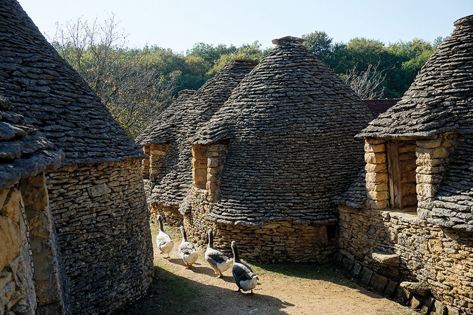 Se trata de cabañas que evocan los cuentos de hadas, con una peculiaridad notable en su construcción: son circulares y están formadas por piedras apiladas y encajadas sin el uso de argamasa o cemento. Estas singulares cabañas existen desde tiempos inmemoriales, con un origen que se pierde en el pasado. Uno de los primeros registros escritos data del año 1449, cuando pertenecían a los Monjes Benedictinos de Sarlat.