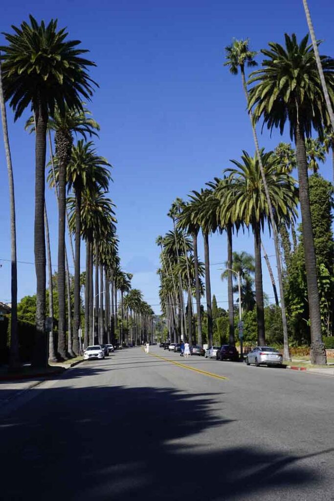 Beverly Hills es un vecindario que rezuma exclusividad desde el momento en que uno se adentra en sus calles. Las imponentes palmeras que bordean sus avenidas sirven como preludio a las majestuosas residencias que las rodean. A medida que circulamos, es inevitable no quedar maravillado por la belleza y la magnificencia de las propiedades que vemos. Algunas exhiben una arquitectura solemne y señorial mientras que otras deslumbran con diseños contemporáneos y vanguardistas. Cada una de ellas es una obra maestra arquitectónica, con exuberantes jardines que evocan oasis de serenidad, piscinas resplandecientes que reflejan el sol del sur de California y detalles elaborados que testimonian el gusto refinado de sus afortunados propietarios.