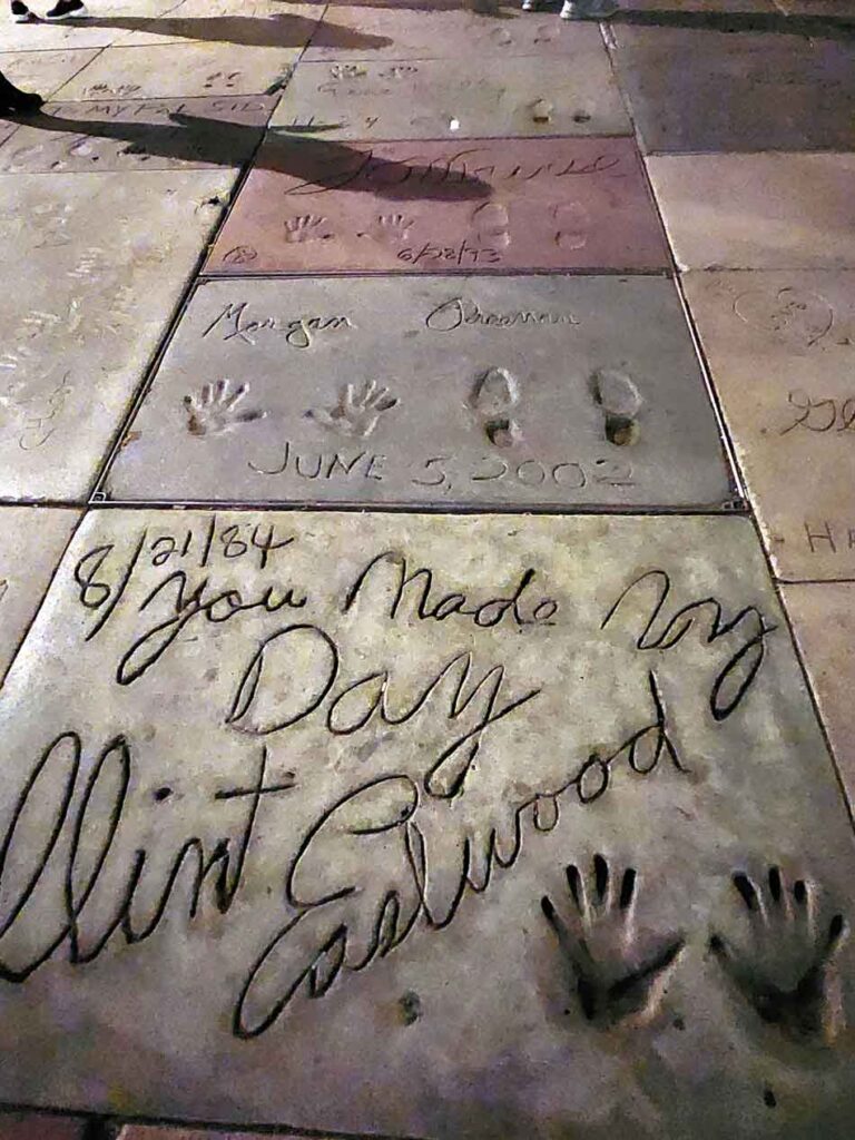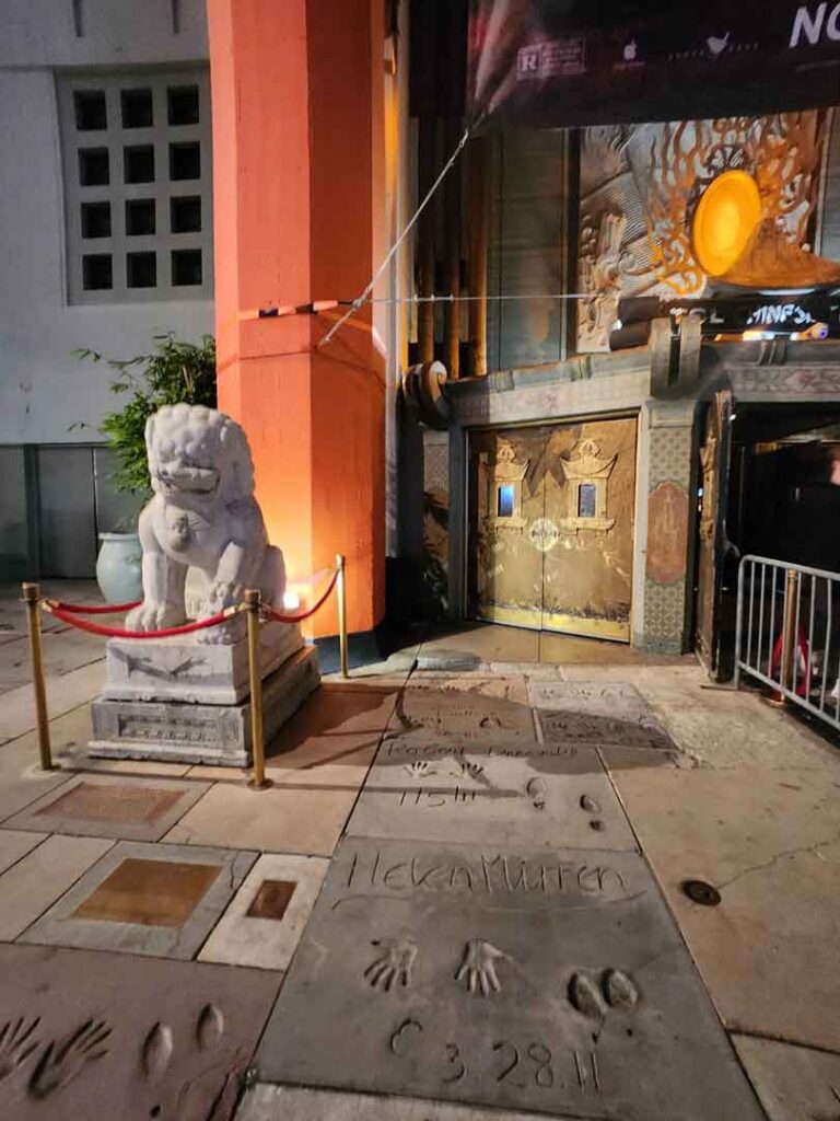 El Teatro Chino es otro de los puntos destacados de Hollywood Boulevard. Su distintiva fachada de estilo chino lo hace inconfundible, y ha sido el escenario de numerosos estrenos de películas y eventos de la industria cinematográfica. En sus puertas, las huellas y firmas de incontables estrellas de cine y otros personajes famosos están inmortalizadas en bloques de cemento. Pasamos un buen rato explorando y descubriendo huellas de pies y manos, algunas con grandes frases cinematográficas que han quedado para la historia. Una experiencia maravillosa con muchos de nuestros artistas favoritos y dejando de nuevo que nuestra imaginación vuele hacia los momentos mas destacados de sus carreras.