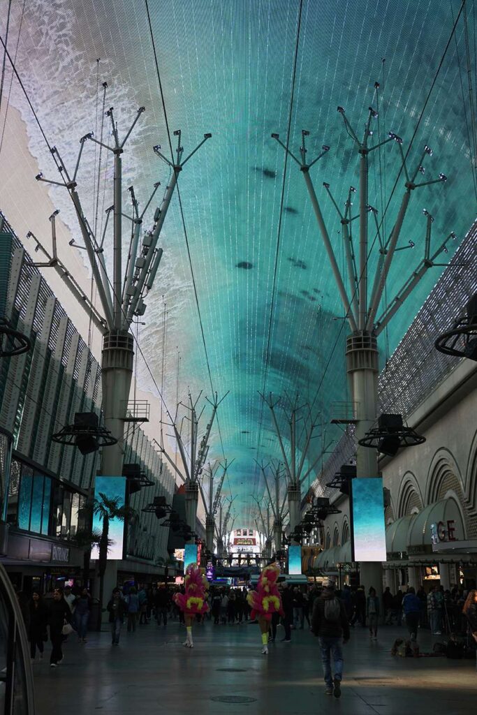 Se trata de una larga avenida techada con una pantalla LED gigantesca que cubre varias manzanas. Es impresionante la experiencia inmersiva cuando te adentras en todo un espectáculo de luz y sonido, con impresionantes efectos visuales sincronizados con música del momento.