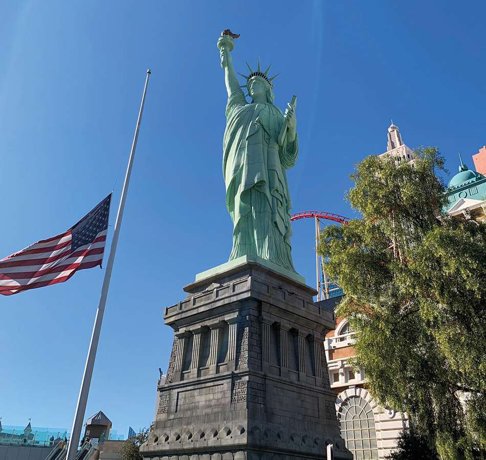 El New York-New York nos quedaba un poco lejos y llegamos muy cansados, con lo que solo vimos la Estatua de la Libertad, el Empire State Building y el Puente de Brooklyn. Tiene una increíble montaña rusa que recorre el exterior del hotel, y también espectáculos en vivo en el mismo teatro.