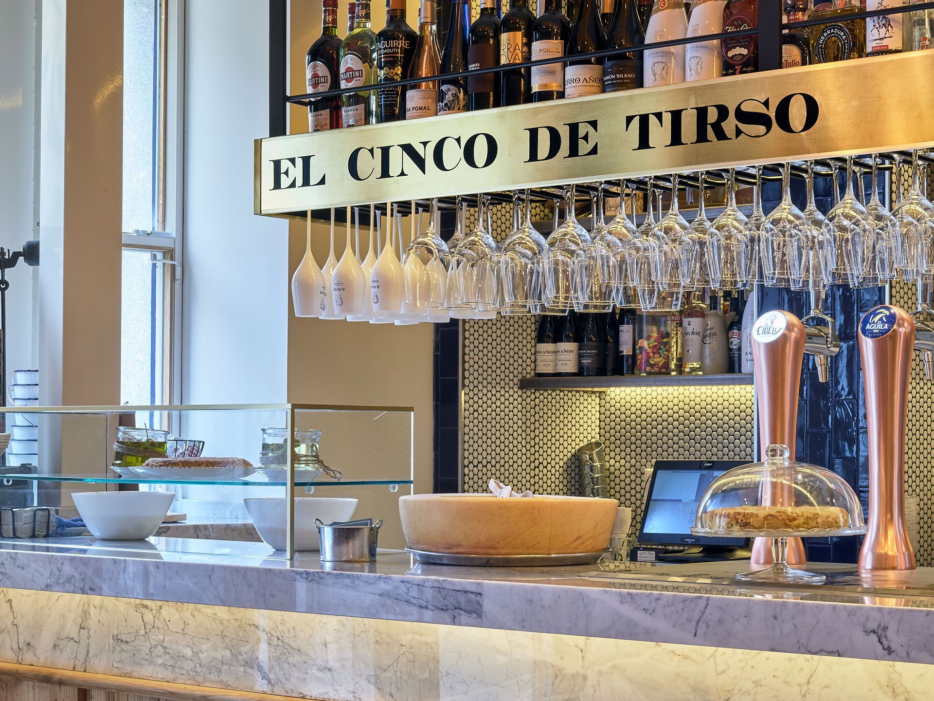 El 5 de Tirso destaca por su decoración moderna con toques vintage, creando un espacio cálido y acogedor. La disposición de las mesas y la iluminación suave invitan a los comensales a relajarse y disfrutar de una comida tranquila.