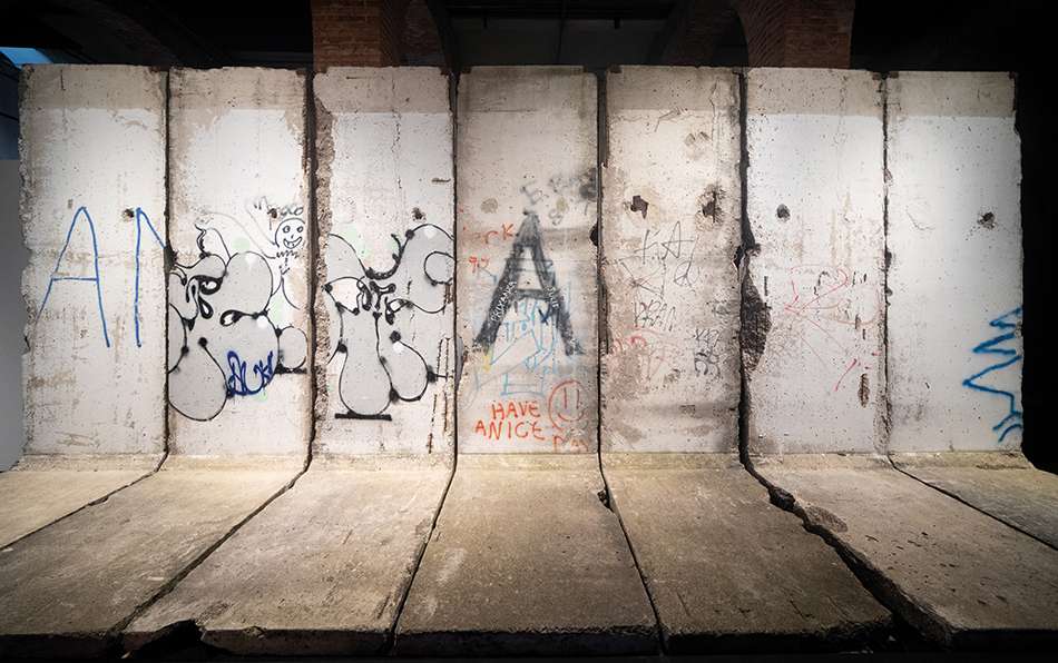 La exposición cuenta, entre otras piezas, con 20 metros del propio Muro, de 3,5 metros de altura y 2,6 toneladas, y materiales que retratan su evolución con el paso de las décadas, como el alambre de espino colocado en la primera etapa de la división.