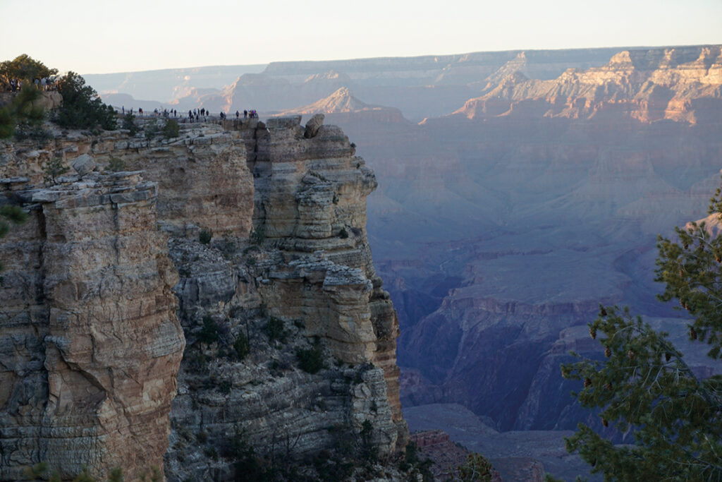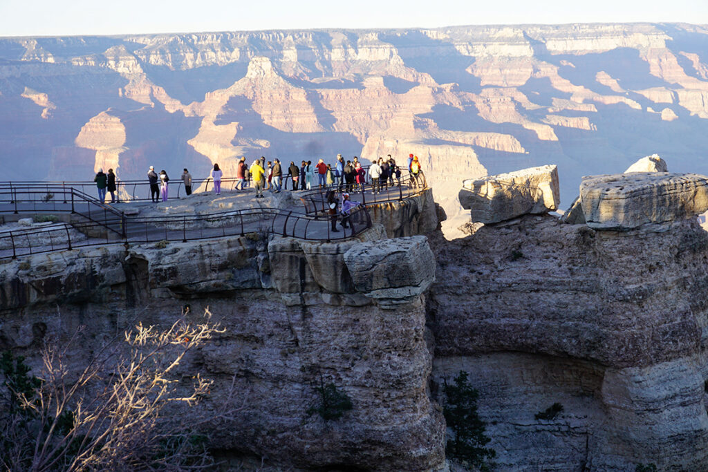 A lo largo del Rim Trail, encontrarás algunos de los miradores más impresionantes, como Mather Point, Yavapai Point, y Hopi Point, entre otros. Estos miradores ofrecen increíbles y oportunidades para la fotografía, especialmente durante el amanecer y el atardecer.