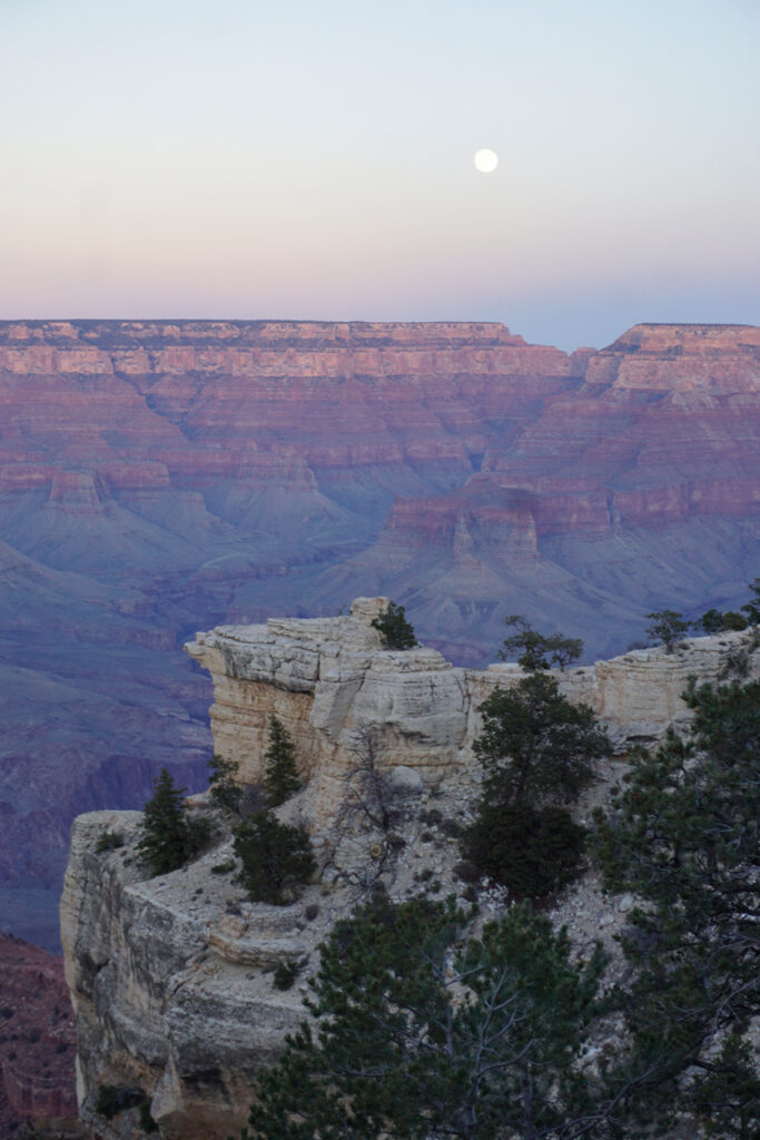 Nos quedamos hasta el anochecer, capturando en fotos a cada instante, el cambio de luz mostraba diferentes paisajes. Tras adaptarnos a las sombras y guiados por la brillante luna en medio de la solemne oscuridad, regresamos al El Tovar, eso sí, temblando de frío. Allí, disfrutamos de una cálida cena, el broche ideal para un día tan memorable.