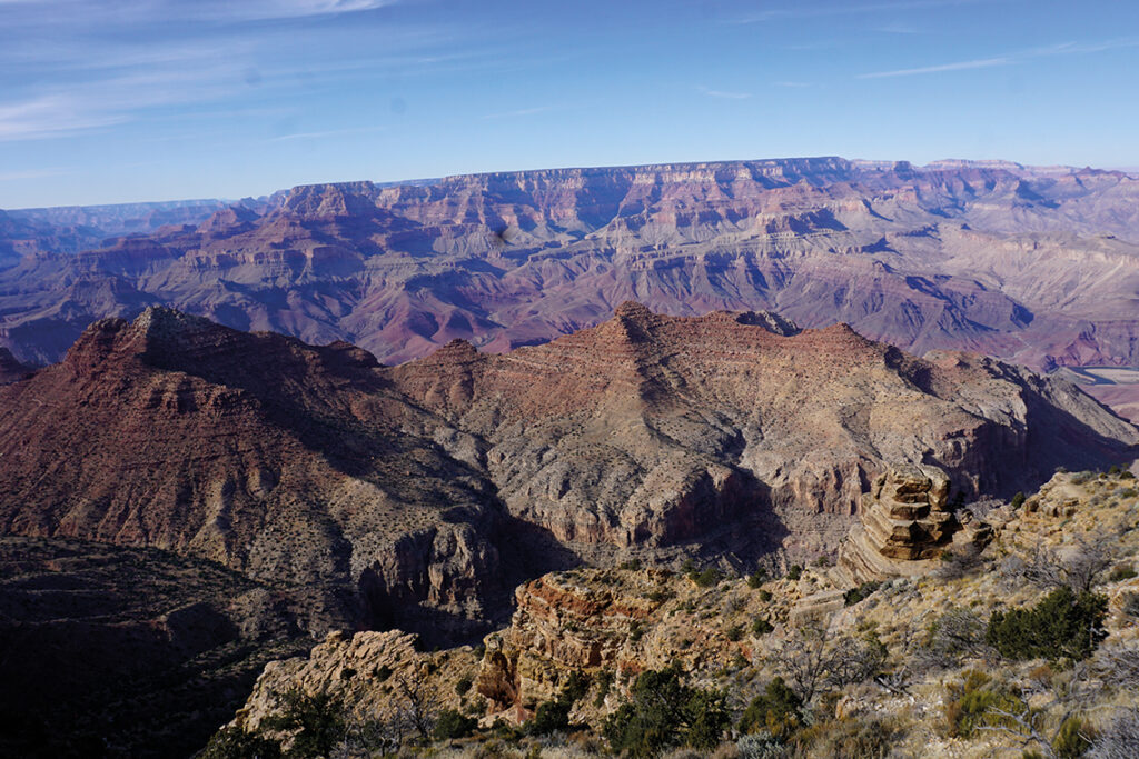 Sin planes de realizar actividades o senderismo, nos enfocamos en explorar algunos de los miradores más emblemáticos. Además, hicimos una parada en el South Rim Visitor Center, una visita que recomendamos para apreciar la rica cultura del lugar y descubrir las numerosas opciones y actividades del parque, como los vuelos en helicóptero o las rutas guiadas de varios días, perfectas si el senderismo es parte de tu aventura.