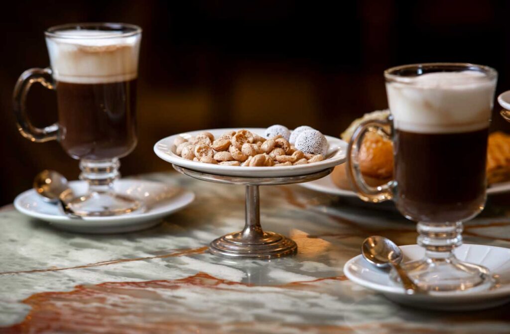 En uno de estos emblemáticos e históricos cafés que invitan al deleite tan solo con la exquisita decoración que transporta a épocas pasadas, saboreamos un delicioso “bicerin”, un clásico e imprescindible de Turín que consiste en una bebida caliente elaborada con café, chocolate y crema. El secreto para degustarlo de la mejor forma es no mezclarlo.
