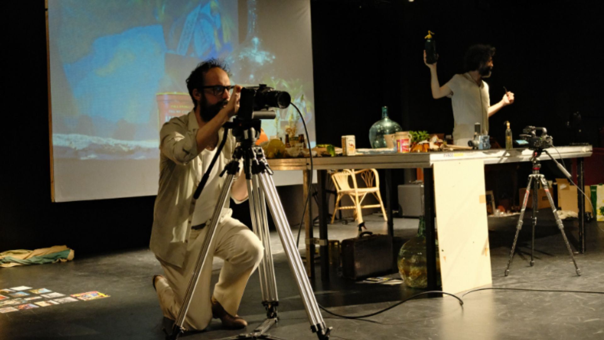 El montaje, de apenas 45 minutos de duración, apuesta por un dispositivo escénico mínimo: dos actores, algunos objetos, cámaras, luces y el propio público. Esa sencillez formal refuerza una atmósfera en la que los conflictos internos —del director, el guionista, los intérpretes y el equipo técnico— se convierten en parte del relato.